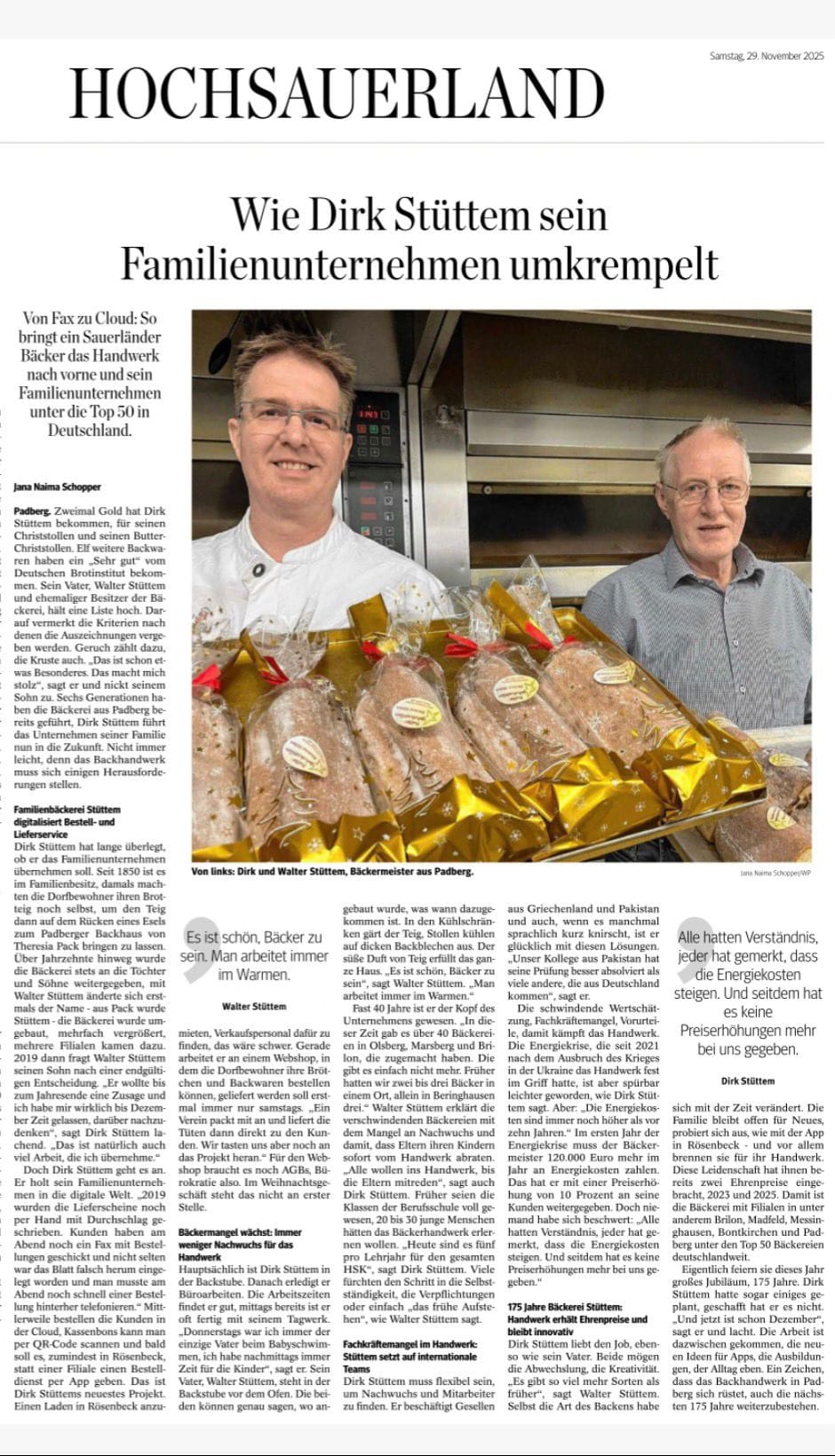 wird die Bäckerei Stüttem mit dem Bundesehrenpreis des Deutschen Bäckerhandwerks ausgezeichnet.
